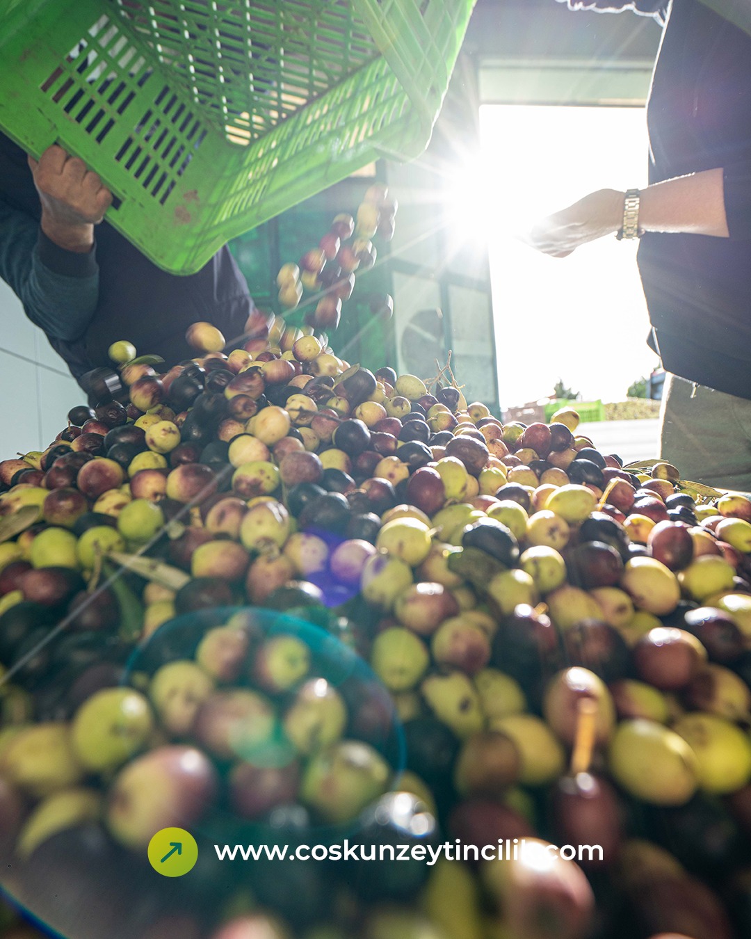 Kendi bahçemizden yere değmeden özenle toplanan zeytinlerimizi yine kendi üretim tesisimizde dededen yadigar taş değirmenlerimizde doğallığını koruyarak preslenir. Asırlardır değişmeyen yöntem olan taş değirmenler, presleme anında zeytindeki minerallere ve aside herhangi bir değişime uğratmaz.