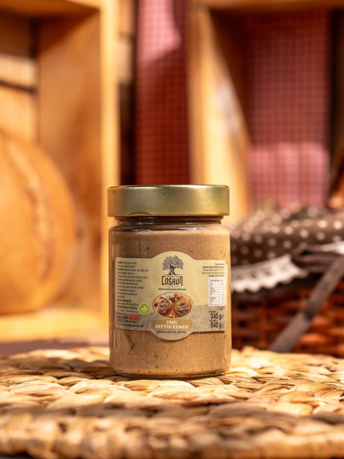 En uygun hasat döneminde hasat edilen, özenle seçilmiş yeşil zeytin tanelerinin acılıkları giderilir, özel yöntemlerle hazırlanır, zeytinyağı, çeşitli baharatlar ve tuz ile harmanlanır. Sabah kahvaltılarının olmazsa olmazı yeşil zeytin ezmesi bir dilim ekmekle, simitle, sandviç arasında tadına doyum olmaz…